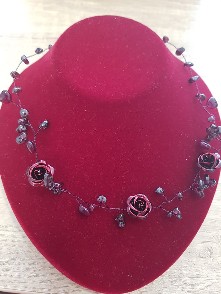 Bordós rózsás P.nyaklánc